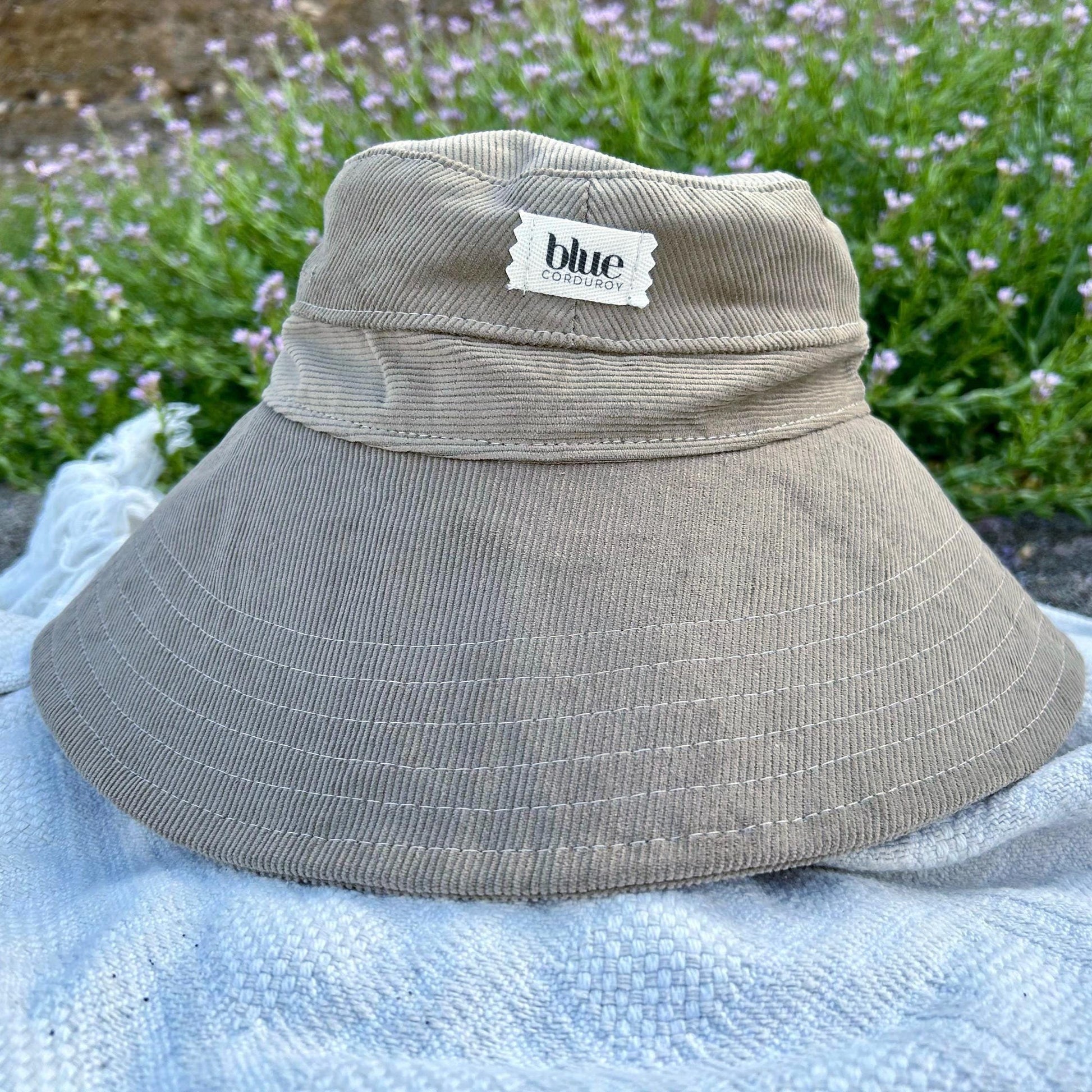 A wide brim corduroy sun hat for beach days and summer fun. This sun hat for women has a nice wide brim to protect your whole face and even your neck and chest. Easy to bring along in your bag, folds up easy.