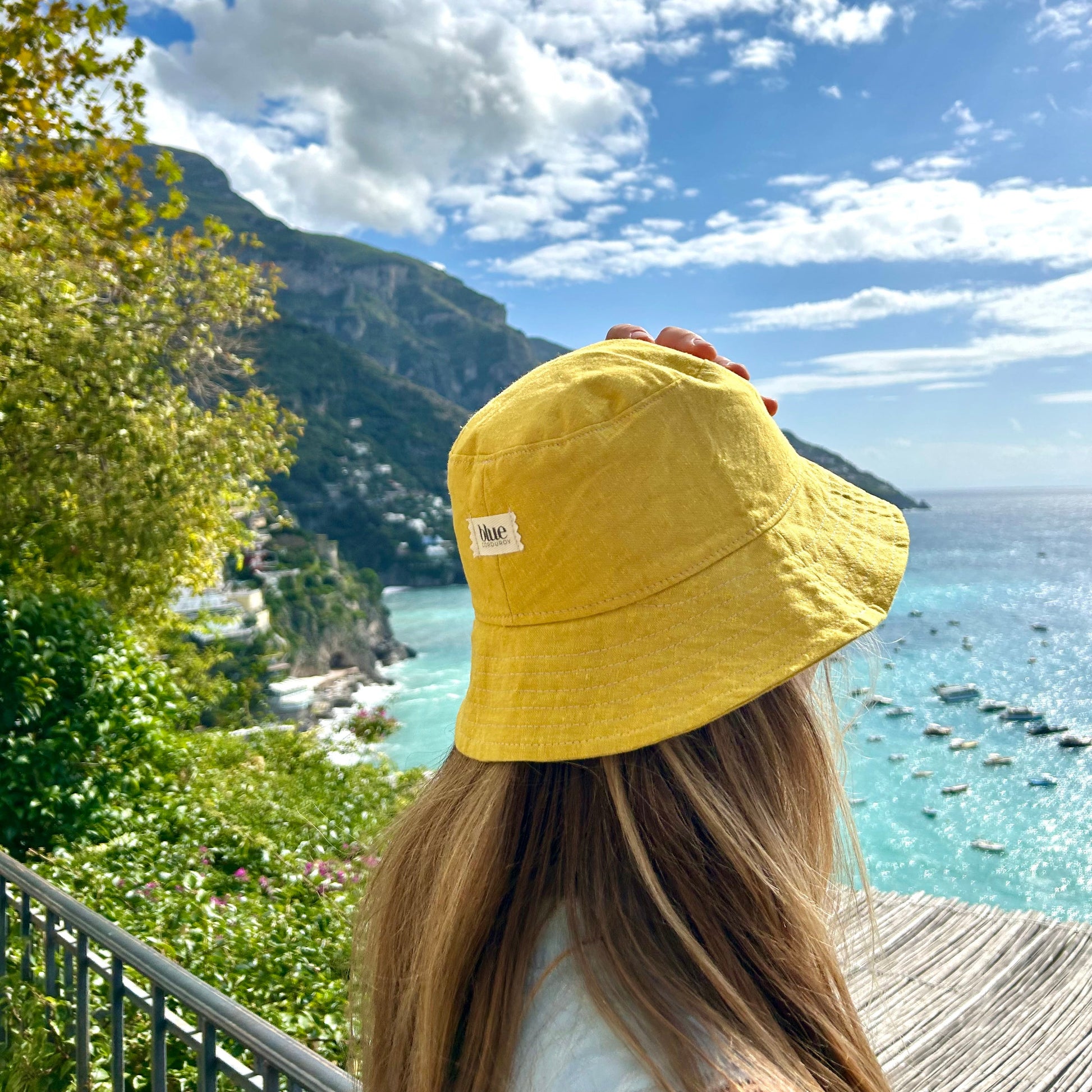 The perfect weekend bucket hat! Made from a bright yellow linen blend fabric. This hat is very comfortable to wear. A great sun hat for women or men. I made this hat with a day of adventure in mind, somewhere sunny and wild! For baby or kid version of this hat, see link below.